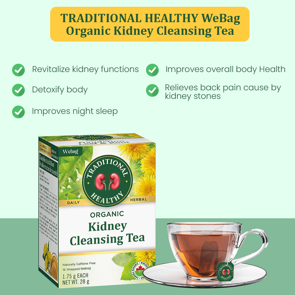 By gently eliminating toxins and waste accumulated in the kidneys, TRADITIONAL HEALTHYâą Organic Kidney Cleansing Tea offers natural detoxification while supporting their optimal function. You can expect to feel revitalized and energized, thus contributing to your overall well-being.